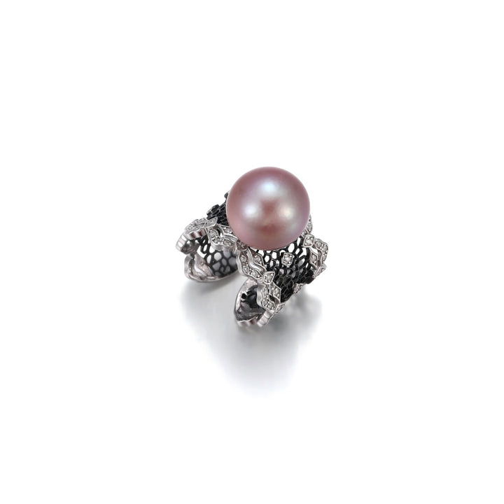 Pearl ring featuring a Kaleidoscopic Violet Edison pearl with diamond-grade brilliance.