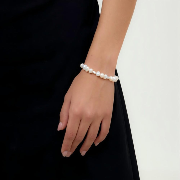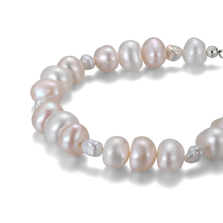 Hand-strung bracelet featuring pebble and keshi pearls in 3.5–8mm.