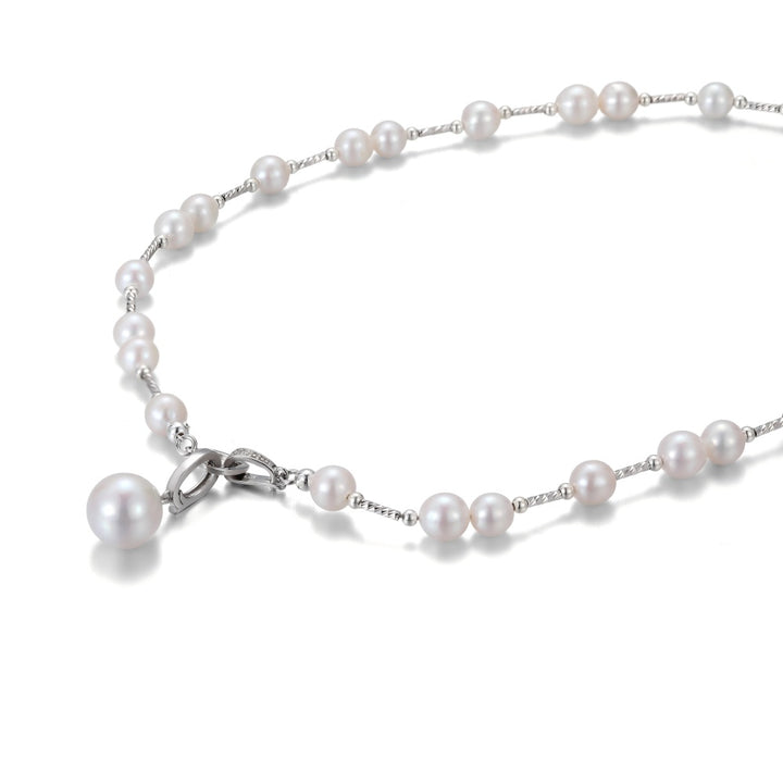 Hand-strung with natural untreated bead-nucleated pearls, featuring secure clasp and chain in 925 sterling silver.